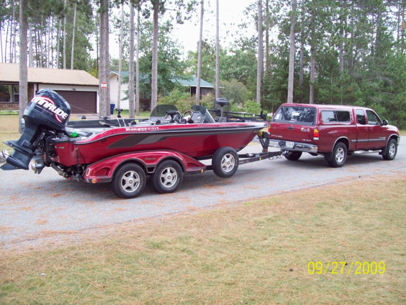 Location: MN | Wondering what boat/rigs people own and the vehicle they are using to tow them. Currently, I am running an old Ranger 680 tiller and towing with a 2006 Chevy TrailBlazer. Eventually I am going to upgrade my boat and I am trying to feel out what my TB could handle or if I need a new vehicle... thought I would see what everyone else is using. Sorry if a similar post has been put up but the search function isn't working for me. Edited by Mak51 10/28/2009 8:07 AM | ||