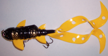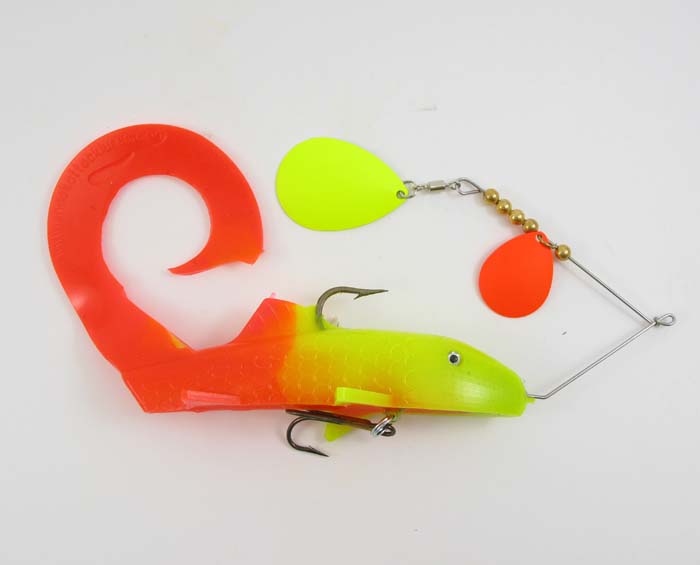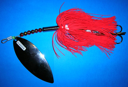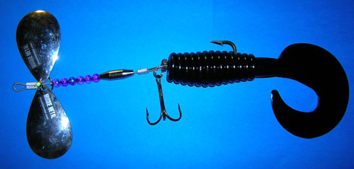 Posts: 37 | Muskie Metal; I like that top bait with the Colorado's, I make one I call Big Darla. It is a fish catcher, I caught some real dandies on it. I used a 10 inch Kalin Grub with a number 13 saltwater hook and a 5/0 374 stinger. I ad christmas tree stinsel to it, I do not sell any, only for personal use. I like the looks of yours.. Nice Job ! Edited by DonSchwartz 12/29/2009 4:10 PM | ||