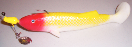 Posts: 676 Location: Wisconsin | I have two new lure types this year, along with many new color combos. Model 3 with rubber tail and Model 2 with a Magnum Willowleaf. Attachments ---------------- MM2BLLSM.jpg (45KB - 196 downloads) MM4FTGsm.jpg (70KB - 209 downloads) | ||