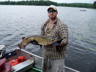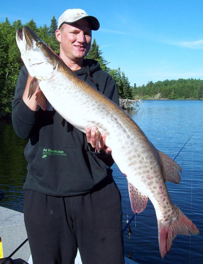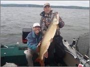 Posts: 313 Location: Bemidji, Lake Vermilion | Here's one from my bro. 56.5 incher from earlier this month. Not the best photo, but its the only one holding the fish that turned out at all. He really deserved to catch a fish like this and to watch her swim away. Now we've just got to give her time to make it to 57 so I can catch her and beat my bro at the same time. Its embarrassing having your little bro beat up on you with fish like this! I've got to regain some honor! ![]() | ||