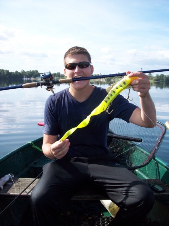 Posts: 43 Location: Bonn, Germany | Hi you muskie guys!!! I´m the guy who recently caught this monster pike up here in Germany. Please excuse my english, I wish it would be better. :-D And also sorry that it is "just" a pike, but I think it´s a pretty cool story...;-) So, all I can say is that one of my biggest dreams came true: catching a muskie-sized pike over the magical 40 pound mark... 23. of September: I have been fishing by my self on one of my local lakes here in Germany near Cologne. The aim in this season was defenetly catching a monster over the magical 50 inch mark because I had a few monstrious followers in early season that didn´t bite. But my time was rare. I´m a student of dental medicines and the new semester started on october first. So I was busy to catch a big one before university starts. On this special day I was sitting in my boat and had already fished a few spots without results. So I said to my self: "If you want to catch a big one, no a real big one, throw a real big lure!!!" So I changed the magnum bull dawg into a pounder bull dawg (super magnum pro dawg) and started throwing it. My fishing gear is always muskie gear because I really love the style of fishing and if you are fishing big baits you naturally will catch bigger pike! The rod was a St. Croix Sling Blade (not perfect for pounders but it works ) with a Revo Toro Winch 61 reel spooled with 80lb braided line and as a leader a 100lb Fluorocarbon leader. So I pulled my pounder dawg through the open water. The water column were something between 25 to 30m or 100 ft. I worked it in 6m (18 feet) in the water column. At the end of the retreve I saw my lure at the boat and pulled it with an parallel figure L, like I always do, away from the boat. Right at this moment I saw this massive pike chasing my lure. The rest happened in slowmotion. I saw her swallowing my hole pounder. It was totally away and this means everything when you fish a pounder and a fish has the complete lure in its mouth!!! When I´m now looking back at this picture in my head I´m always shocked So the fish had the lure in its´mouth and the lucky thing was that she swam away from me. So I was able to set the hook against her swimming direction. And this is very important when the fish strikes boatside. So you can imagen how I was praying to god in my little boat that I can net this monster fish by my self. I saw that the big fish was hooked good and I kept the line tension strong to have the oportunity to net the beast as fast as possible. With the thumb on my spool I didn´t want her to take line and she shaked her head so crazy that I was scared. I directed the fish one time around my boat (45seconds, not more) and was happy to net her on the bow of my boat with a big landing net ( Fox Rage Speedflow Xl). The first thing I thought was: "My first 40 plus pounder!" After I realized what I caught I called two of my fishing buddies, who were fishing from shore, to take pictures and some measurements. I drove with my boat (fish in the net in the water) to shore and we did the measurement. First I thought we are doing something wrong, because couldt this length really be? After a five time measurement the impressive length was 55.3" inches (140.5cm) by 27" girth!!! This was soooooo craaaazy I couldn´t realize... On this point I have to say sorry for the pictures we did but in my opinion it is not important that you have the best pictures. The most important thing is that a fish of this size is healthy and physikally able to be released save and well! So I said to my buddies: " let´s take some pictures for thirty seconds and than we will release her quickly!" The great thing was that she swam away like nothing has happened. And this is the best thing and the monst important thing that could happen: to release a possible catch and release record with nearly 50 pound well And thats all. I did it! Joe Fittante will do a replica of this fish for me and in a few weeks this monster will hang on the wall right next to my other replica (47incher) I receved a week before I managed to catch the 55 incher. My next dream, or the dram I had for the last few years, is to come to the US or Canada to catch a nice, no a big muskie. Hope to get the chance next year. Also thanks to you guys because most of my knowing of bigbait-fishing I got here in the last two years... I wish you a good winter-season, regards Flo Attachments ---------------- (0KB - 174 downloads) !40.5.jpg (88KB - 219 downloads) 100_1486.JPG (52KB - 213 downloads) 100_1492.JPG (54KB - 225 downloads) 23.09.11(1,40m Flo) - Kopie.JPG (178KB - 231 downloads) 55.3.jpg (85KB - 215 downloads) | ||