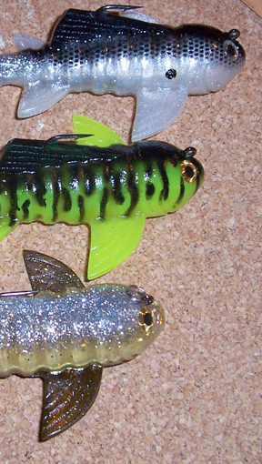 Posts: 2060 Location: Appleton,WI | RubberHairy Tackle will unleash the redisigned Twisted tullibee (2012) in both the regular size and our magnum size and our new lure the Swim n spin DT(Double Tail)You can use it as a bucktail,swimbait,pullbait, or jig.You can even burn it in as fast as you can reel.I feel its the most versital soft plastic out there.Heres a few custom show colors in the tullibees and swim n spin for you to look for at the shows.We will have these starting in chicago where we are located in the entrance way of the hallway exiting the gym. Attachments ---------------- 100_1960.jpg (152KB - 261 downloads) 100_1961.jpg (164KB - 278 downloads) | ||||