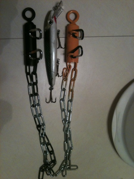 Posts: 196 | A buddy and myself just got into muskie fishing 2 years ago and didn't have alot of money to start out with. For this reason it was a big deal to us when we lost a lure and leader. I bought a lure retriever pole from Frabill and it works great.....as long as your lure is 15 feet or less down, not hooked into timber badly, and you have a clear shot at it. I then decided to try to get a drop down since I have a bass fishing one and it worked great other than being a pain to keep on the line. I couldn't find anything for muskie sized lures. I then built my own to try. I have now modified mine to work in all conditions and have decided to start selling them. I appreciate all of the help we received from members on here so I decided to give you guys first chances to get them. They are called log lifters, and there is a reason for that, if you can't get the lure out of the log, they are strong enough to bend the hooks or pull up the log. Myself and a buddy used them all of last year as a prototype and only lost one lure, compared to the 50 plus we lost the year before. We only lost the one because the wind was terrible and the line was wrapped around too many branches to get to the lure. These are bullet proof! You just hook it on your line, and let it slide down while holding onto the rope. The eyebolts are all drilled, tapped, threaded in, and welded. The body is 1 1/4 inch solid steel and the chains are 220 pound working strength. There are no bolts to let water in to rust them out, these are all welded construction retrievers. They weight almost 2 pounds and most of the time just the weight knocks the lure loose, but if it's really stuck the chains are 16 inches long each and you jiggle it until the chains catch in the hooks. These are now all powder coated in your choice of black or taxi cab yellow. This is one of the strongest finishes on the market. I am in the process of getting good coverage from red. I will have a lifetime warranty on these, if it ever breaks, just send it back however you want with $5 for return shipping. I will repair it, or if it's too bad, replace it at no charge. The standard models are $27.50 and the monster trolling edition is $32.50 and weighs nearly 3 pounds. It will get to the deepest diving oversized trolling cranks. If you think about it, that's less than the price of one lure and leader. I have no problem with making these to order is you want a certain color or a certain style. I also have no problem with shipping them, all you have to pay is actual shipping if you need it shipped, $5, and it will be sent priority mail with delivery confirmation. I accept paypal, and postal money orders. Thanks and let me know if you have any questions. And yes, that is a full size 9" DD next to the standard models. Edited by cajun84 4/20/2012 8:37 PM Attachments ---------------- both next to dd (Copy).JPG (64KB - 606 downloads) | ||