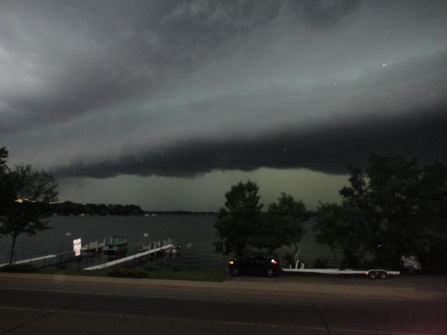 Posts: 2754 Location: Mauston, Wisconsin | Run like hell! - you don't really know if its going to be over in minutes or days. Happened to me up on Crow Lake (Kagagi), fishing late afternoon seeing lots of muskies & catching a few & I hear thunder - look to the west nothing, then again thunder but obviously closer- look to the east & see the wall cloud, my fishing partner wanted to stay & pull up on an island. Me, no way, we're out of here! Beat the storm to the public launch by a minute- full throttle for ~ 4 miles, running in front of the storm cell, loaded my boat. Then helped rpieskie's son load his, it was not easy, I got a little wet. The storm came in very fast from the east- the storm didn't let up until next afternoon. The decision time + stowing the rods was less than 3-minutes. I can't imagine being stranded on an island overnight with cabin shaker thunderstorms rolling through. Be safe! Al Edited by ESOX Maniac 7/18/2012 12:00 PM | ||