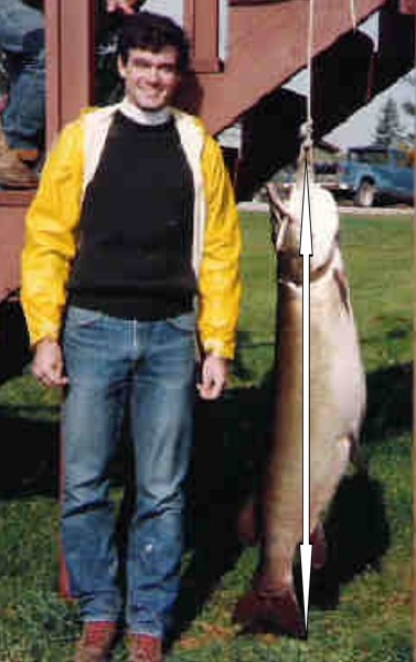 Posts: 1300 Location: Hayward, Wisconsin | Nice try Aaron, but no sale. Your methods are far from correct, especially your "fork length measurement...it is measured in a straight line from the tip of the jaw of the fish to the center of the tail and from there to a vertical line between the two tail tips or the "pinched" tail tips together and has NEVER been more than three inches on that fish (two in the mount) or Martin Williamson's 61 1/4 pounder (three inches) or any other I have measured. Your "generosity" with your additions to length are beyond reason. As for the possibility of water having been added, 9 pounds is slight more than one gallon (US measure) and would EASILY fit into the stomach of that fish. And by the way, did you note that the throat of O'brien's fish was slit, making the "hanging measurement" even longer than it would have been normally? I'm not buying your "pool cue" analysis either, sorry. Edited by Larry Ramsell 1/5/2013 2:11 PM | ||