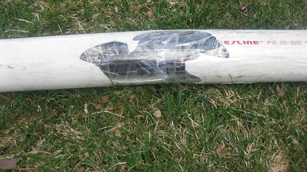 Posts: 2893 Location: Yahara River Chain | I hope you were able to open that tube in front of the driver! Just how does one crush pvc piping like that???? On the other hand, they taped it up nicely for you. Man that just sucks. | ||