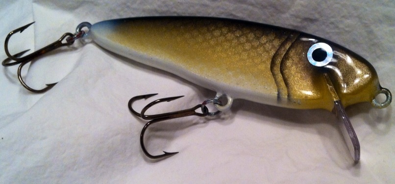 Posts: 179 Location: Sault Ste. Marie, Michigan | One of my new "Little Buddy" baits in "Burnt Gold" foil color will be the hot bait this spring...5.5 inches and lots of flash will imitate the smaller bait fish of the early season. Experimented with this bait at the end of last year, so I know it will be a winner this year. Edited by rjbass 3/25/2014 1:38 PM | ||