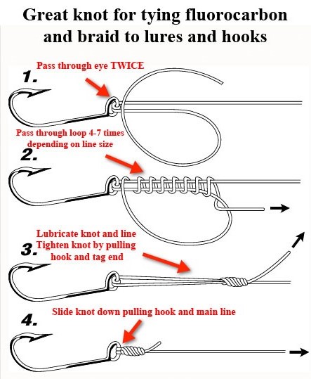Posts: 622 Location: Seymour, WI | Can you guys post some pictures of what the different flourcarbon knots look like on your leaders? I have been crimping mine, but I would like to learn a good knot that has a loop on the end and does not twist the flourcarbon up when you tie it. | ||