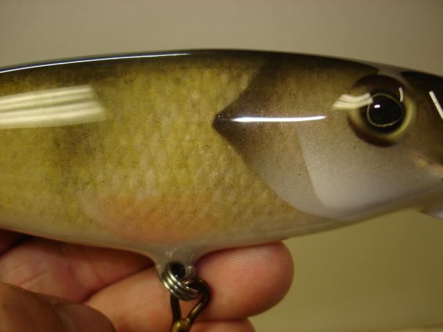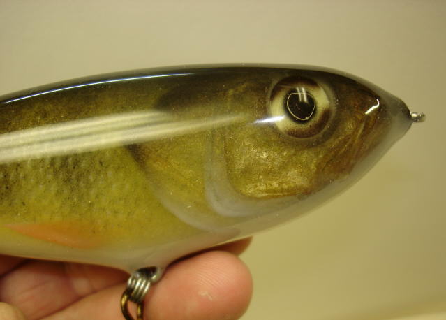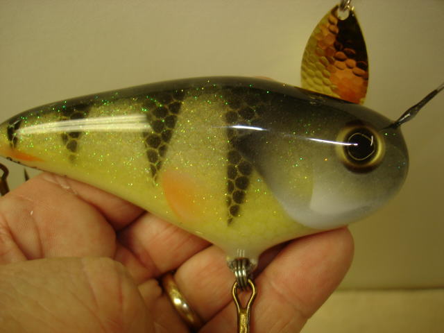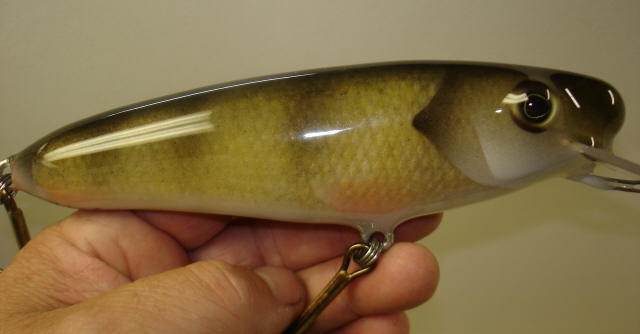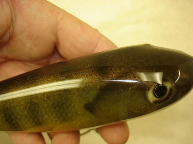 Posts: 399 Location: Burton, Ohio | Here is another perch fish skin I just completed. It is a 6" mahogany body with yellow perch skin over it. I cut the perch head off , cleaned it out and applied it over the front of the lure. It took 7 coats of epoxy to get it to smooth out. Attachments ---------------- DSC04878perch10.jpg (38KB - 283 downloads) DSC04865perch11.jpg (51KB - 286 downloads) DSC04853perch9.jpg (33KB - 297 downloads) DSC04829perch5.jpg (29KB - 320 downloads) DSC04828perch6.jpg (21KB - 296 downloads) | ||