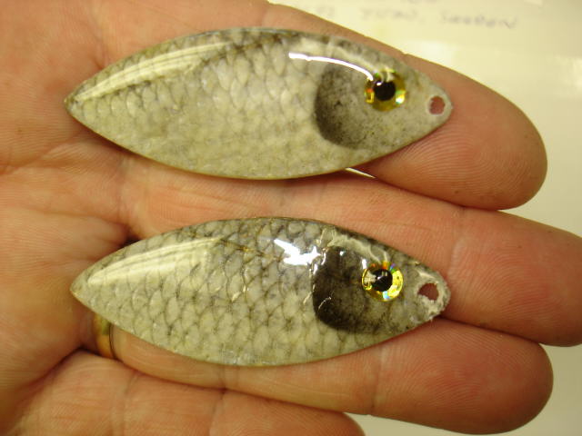 | John Tried that a number of years ago. The baits looked great, but the epoxy cracked like crazy after a a couple of times out. Figured I had to cure the skins with taxidermy chemicals. Seems the moisture in the skin comes out over time. If you have that prob with this set- go onto a taxidermy site and buy a bag of the skin cure powder. Works great and is inexpensive . Joe Trueglide | |||