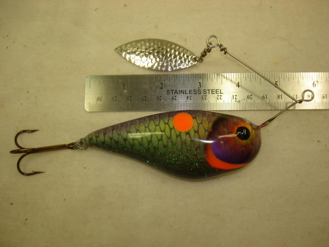 Posts: 399 Location: Burton, Ohio | Well I started to tinkering with those spinnerbait style lures again. Here are some recent ones. Attachments ---------------- DSC03814flutshad1.jpg (33KB - 303 downloads) DSC03842flutshad5.jpg (34KB - 329 downloads) DSC03878flutperch4.jpg (33KB - 349 downloads) DSC03900flutperch9.jpg (31KB - 306 downloads) DSC03935black1.jpg (34KB - 303 downloads) DSC03939black3.jpg (31KB - 335 downloads) DSC03998shad9.jpg (50KB - 303 downloads) DSC03976shad12.jpg (33KB - 335 downloads) DSC04152blades1.jpg (33KB - 319 downloads) DSC04175blades8.jpg (28KB - 316 downloads) DSC04359purshad3.jpg (30KB - 294 downloads) DSC04370purshad7.jpg (32KB - 299 downloads) | ||