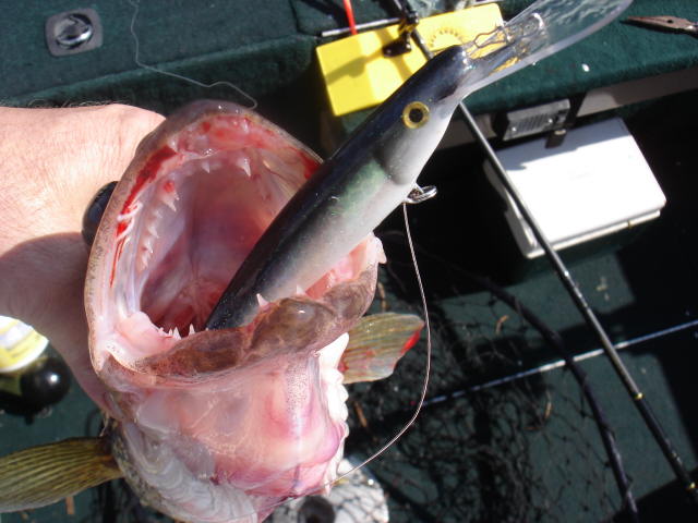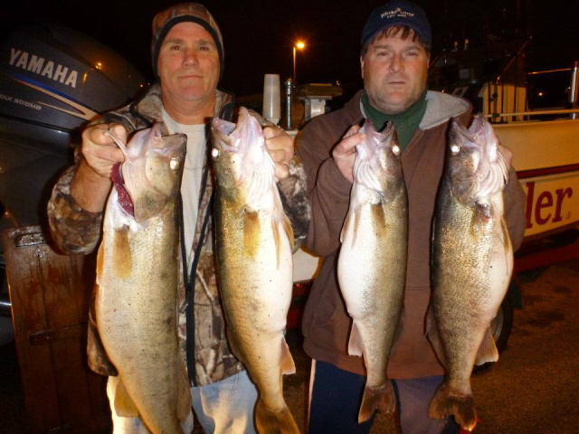 Posts: 399 Location: Burton, Ohio | As the water approached the lower 40 degree range the fish started to hit a bait I made years ago called "Tony the tiger" It was a cherry bodied bait that caught many fish over the last 3 years, 5 over 11 pounds! I decided to retire it last year. I wanted to try to make another one but was afraid to try thinking the mojo might be there again. Well to my suprise it did. The lure acts more like a swimbait in its action. It has that crippled fish action while trolling at a slow speed. It is painted in a perch pattern but the large fish seem to like it in the shad schools. Not sure if they think it is a perch or a shad. It had one night were it took 4 fish over ten pounds and one at 11.75 pounds and took 2nd place in a "Fall Brawl" walleye tournemant we were in. Some one pinch me! It was for sure a special night. The 5 top fish weighed just over 55 pounds. Attachments ---------------- DSC05130tonytwofish.jpg (61KB - 271 downloads) DSC05182franktonyfish.jpg (27KB - 261 downloads) 12-3-2011bigfisha.jpg (46KB - 290 downloads) | ||