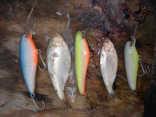 Posts: 399 Location: Burton, Ohio | I ended up running some of the first coat blanks the first night and caught some nice fish. I decided to continue the painting process after running them the first night and came up with these patterns Attachments ---------------- DSC05138littleshadwalleye.jpg (56KB - 284 downloads) DSC05159midwalleyeshad1.jpg (19KB - 282 downloads) DSC05161littleshadwalleye.jpg (23KB - 264 downloads) DSC05216bigwalleyeshad.jpg (24KB - 282 downloads) | ||