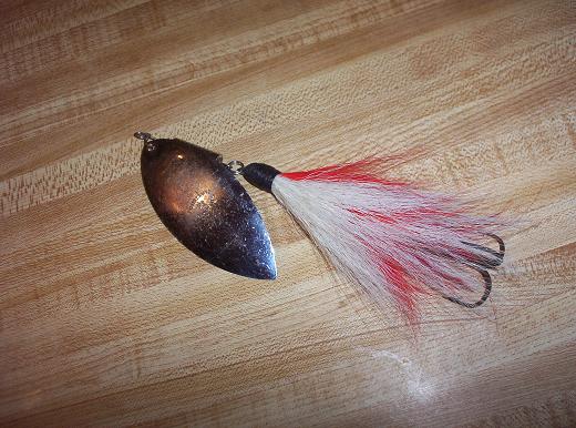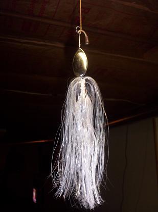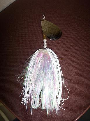 Posts: 21 | This lure was commissioned by a friend for short line deep trolling. 13 ounce trolling spinnerbait. I used a Mustad 10/0 hook and 0.092" wire. I need to find a bucktail substitute, something longer, maybe artificial yak hair or horse tail? Those are #8 and #7 willow leaf blades. Gotta upsize those too! The bait began as a wooden pattern. The mold is made from Bondo. | ||