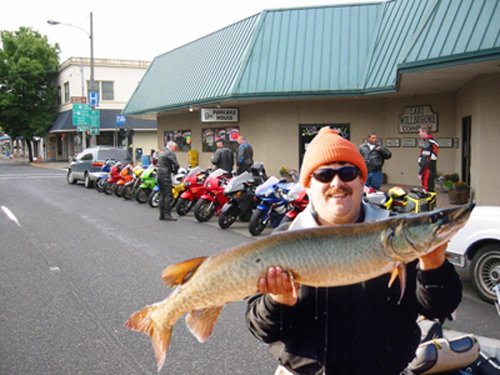 Posts: 188 Location: Madison, WI | Recently the carnival was in town and in the spirit of improved international relations (I'm sure you've read about the strain between the U.S. and Carnovia), I volunteered to take many of their finest workers out muskie fishing. In this picture you'll see the Tilt-O-Whirl operator with a muskie we caught just outside the pancake house. It was quite a fight as she would bury herself deep in the syrup - you can see it dripping off of her in the picture. Thanks to the superbraid and a little bit of butter we were able to get her to the surface where I used my new fin-friendly Beckman Musky Spatula to scoop her into the boat. A couple bits of advice when fishing pancake & waffle facilities... 1. Topwater doesn't work well unless you're fishing the Lite stuff. 2. Bucktails are pretty much shot after the first cast. 3. The smell of bacon puts the motorcycle crowd into some sort of feeding frenzy. In the picture you can see them starting to circle - after this photograph was taken I discover that Mr. O-Whirl here had a pound of the stuff in his pants pocket. Attachments ---------------- Panfish.jpg (156KB - 223 downloads) | ||