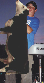 Posts: 188 Location: Madison, WI | Right you are, how could I omit that glorious day... Donnie, Weston and I were fishing the West Arm of Eagle when we SPOTTED this glorious beast grazing in the cabbage. Donnie had her up once on a custom Clovertail but failed to get her into the stanchion. We came back about milking time and sure enough Weston got her to go. After a short battle, a few photgraphs, a quick mastitis test and few glasses of warm milk we set her free. Donnie was so excited I had to get the manure speader out. In case any of the rest of you catch her, or have caught her before, she was tag number 189 and according to the Canadian Milk Board produced about 18,000 pounds of milk in 2001. Attachments ---------------- WhatACow.jpg (37KB - 200 downloads) | ||