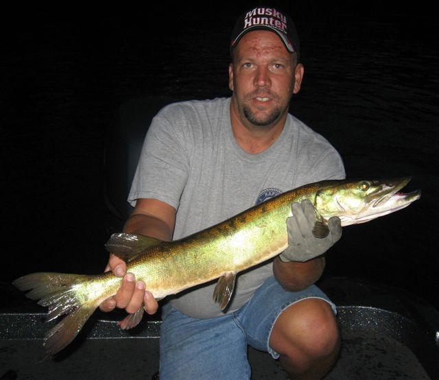 Posts: 1939 Location: Black Creek, WI | These are the kind of stories I love. My buddy Todd Forcier guided Chuck Holmquest to not just his FIRST musky (37 incher), but also his second (41 incher) and third musky (31 incher) of his life last Thursday (8/31/2006). All three fish ate custom Long Tale Spinnerbaits! Way to go Chuck! I'm sure chuck won't forget that evening for a long long time. Attachments ---------------- Chuck's first - 37.jpg (61KB - 165 downloads) chuck's second 40.5.jpg (74KB - 123 downloads) chuck's third - 31.jpg (48KB - 146 downloads) | ||