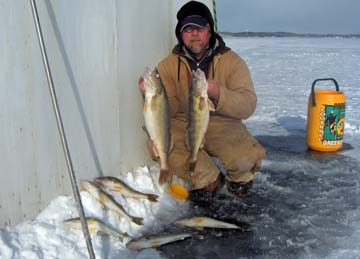 Posts: 2691 Location: Pewaukee, Wisconsin | "Wont have time to fish till tues/wed after the Bears win the Superbowl" Karl, that could take a while. You might wan't to change that to see you soon!!! Here is some of the weekend pictures. The walleyes are still working the weedlines and weed beds. All of these fish are from 9ft of water or less. COLD, THE IS NO COLD IN ICEFISHING!!! Attachments ---------------- eyes&light5x3.jpg (50KB - 208 downloads) joeseyes5x3.jpg (53KB - 223 downloads) hugewalleye5x3.jpg (51KB - 214 downloads) nicewalleye5x3.jpg (52KB - 190 downloads) goodnight5x3.jpg (53KB - 212 downloads) | ||