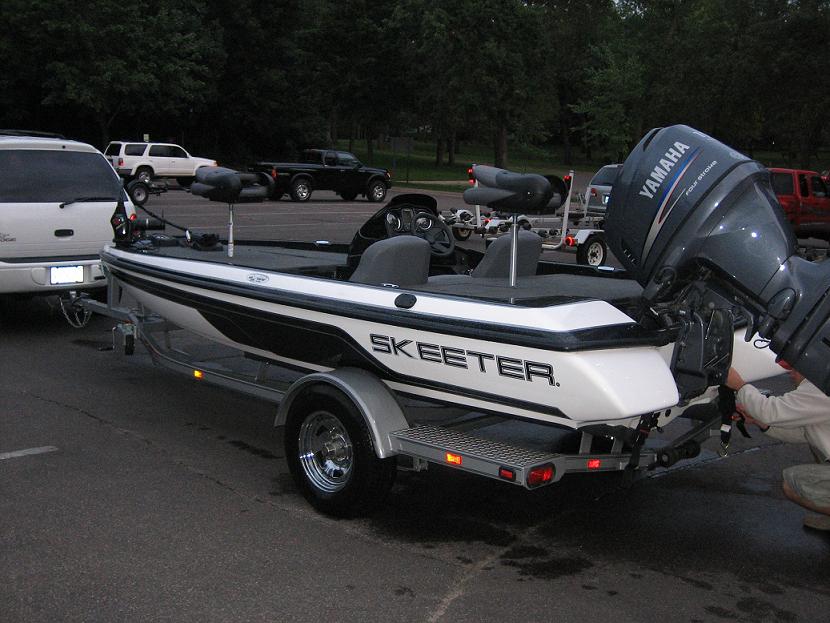 Posts: 17 | Running an 05 Skeeter SX180 with an 05 F115 4 Stroke. Couldn't ask for a better boat for what you pay..... Most of the lakes I fish are around 1000 acres and it is perfect. Handles big water great! Better than most would expect for a 17'8" bass boat. 48-50 mph no problem....... It makes a huge difference being close to the water while muskie fishing. Attachments ---------------- IMG_02601.JPG (80KB - 148 downloads) | ||