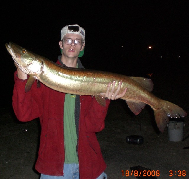 Posts: 413 Location: Madison WI | Well now that I finally learned how to resize my pics to fit on here nicely the following fish were both caught from shore and successfully released, the first pic is a 45 incher and second is my new PB a 47 incher Attachments ---------------- 45 Inch Muskie 12Th of 20081.JPG (73KB - 83 downloads) shodows 46 11.jpg (74KB - 74 downloads) | ||