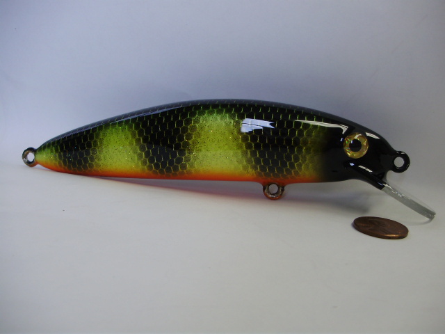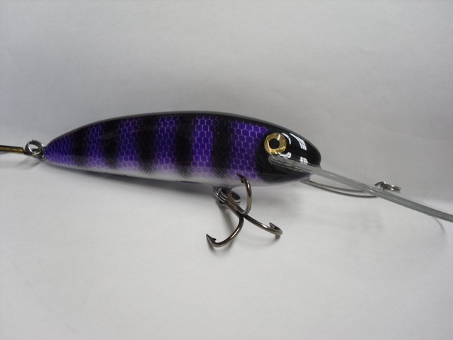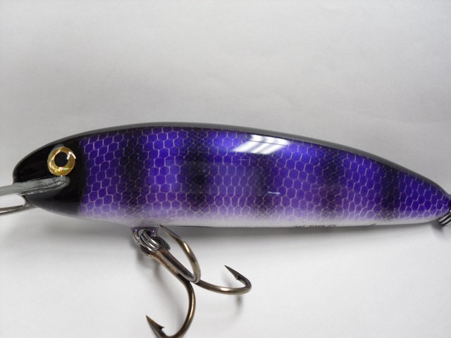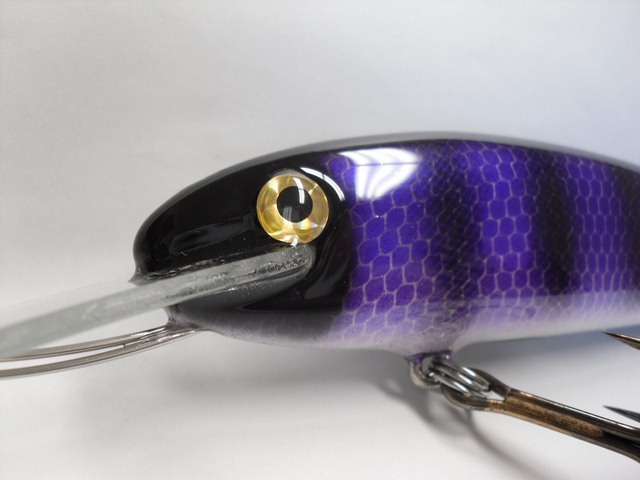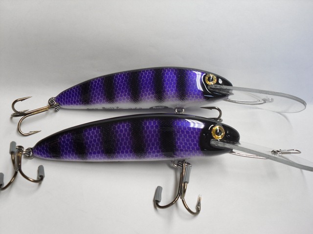 Posts: 909 Location: South-Central VA | Here's my latest two. Custom order for a fisherwoman in MN. They came out pretty nice. There's a bit of glitter in the first coat of epoxy that shows through the purple scales, it's a bit hard to see in the pictures though. These guys are 6" and weigh around 1.75oz. They will dive in the mid to upper teens. jeremy Attachments ---------------- BlackPurple1 [640x480].JPG (49KB - 220 downloads) BlackPurple5 [640x480].JPG (46KB - 189 downloads) BlackPurple6 [640x480].JPG (54KB - 196 downloads) BlackPurple7 [640x480].JPG (57KB - 188 downloads) BlackPurple11 [640x480].JPG (58KB - 190 downloads) | ||