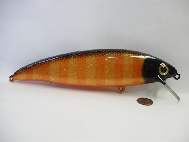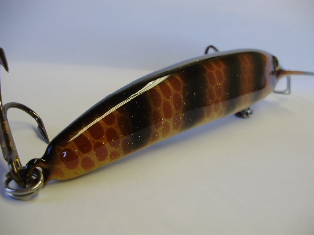 Posts: 909 Location: South-Central VA | I finished this batch of lures up before the Butler show but didn't get a chance to post any pictures. These are two of the three I have left in this pattern- what I call a Black Sucker. This first one is an 8" minnow body in a deep diving version. It will hit the mid teens. The second one is a 5" shad body in a deep diving version. It will hit 12-14 feet. There is a little bit of glitter in the first top coat on them that catches the sun nicely. Attachments ---------------- DDBSM1.JPG (77KB - 229 downloads) DDBSM2.JPG (80KB - 235 downloads) DDBSM4.JPG (78KB - 237 downloads) DDBSM10.JPG (79KB - 217 downloads) DDBSS1.JPG (78KB - 214 downloads) DDBSS2.JPG (76KB - 215 downloads) DDBSS4.JPG (74KB - 230 downloads) DDBSS10.JPG (78KB - 224 downloads) | ||