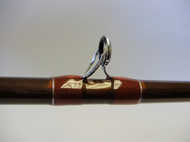 Posts: 909 Location: South-Central VA | Thanks Gerry. I promised to show you some pictures of my new musky rod, so here they are. As you know, St Croix discontinued their Avid line of musky rods and blanks so I found an Avid Inshore model that works great. It's the 3SW80HF and I'm using it to throw your bucktails and some of my smaller crankbaits. I finally got out to fish yesterday so I took it along. I had an Abu Garcia 5500 C3 on it but I just bought a Curado 300DSV for it. I found that it throws small lures (1oz) very well and it will even handle some of my larger crankbaits (3.5oz). It's a sweet rod, I love the copper pearl paint! I used Gudebrod orange (I think it was #0221) without CP which allowed the blank color to bleed through resulting in very nice rust colored wraps. I used the Fuji Alconite guides with stainless frames and silver trim wraps to match. jeremy Attachments ---------------- P2220021.JPG (81KB - 215 downloads) P2220022.JPG (79KB - 226 downloads) P2220024.JPG (89KB - 219 downloads) P2220028.JPG (85KB - 218 downloads) P2220029.JPG (87KB - 214 downloads) P2220041.JPG (77KB - 225 downloads) P2220026.JPG (80KB - 193 downloads) | ||