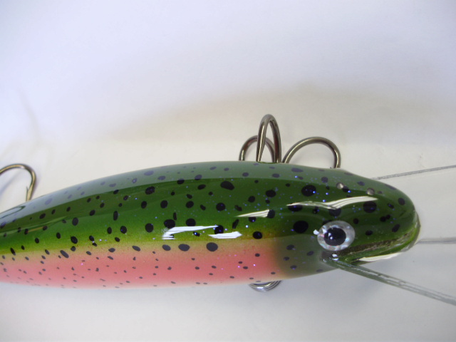 Posts: 909 Location: South-Central VA | Here's a 6" rainbow trout in a deep diver (should hit around 15') that I just finished up for a guy in CA. It's a gift for his friend who's going to use it for largemouth and striper. It will take just about any speed and it should hold up to anything a striper can throw at it. jeremy Edited by bowhunter29 3/8/2011 10:08 AM Attachments ---------------- DD6Rainbow9.JPG (79KB - 196 downloads) DD6Rainbow10.JPG (80KB - 208 downloads) DD6Rainbow3.JPG (77KB - 201 downloads) DD6Rainbow7.JPG (77KB - 207 downloads) DD6Rainbow6.JPG (77KB - 192 downloads) | ||