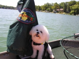 Posts: 1106 Location: Muskegon Michigan | All of our dogs are named after fishing topics. We raise and breed Bichon Frise. Our Kennel Name is Kingfisher so every dog on its pedigree starts with Kingfisher's . The first three are the dogs we have now. The others are past Bichons we have owned. Kingfisher's Little Kingfisher (Fisher Price) for short. Our retired stud. Kingfisher's Opening Dazee (after opening day of fishing season) Dazee for short Kingfisher's Mara Boo (after marabou) BOO for short Past dogs Kingfisher's Little Cleo (Owee) for short Kingfisher's Tad Polly (Polly for short) Kingfisher's Babbling Brooke (Brookie) for short Kingfisher's Pearl Minnow (Minnie pew) for short Here's Fisher Price on the water Musky Fishing and helping the Papa display the Muskies Inc colors. He's a GOOD BOY!! Attachments ---------------- FISHERPRICE.JPG (23KB - 182 downloads) | ||