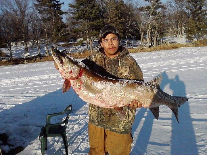 Location: Contrarian Island | how fitting...recieved an email a few minutes ago with pictures of an Indian who speared muskies on Lac Courte Oreilles in WI that was posting (bragging) about the 15 muskies he's speared in the last week or 2 on Facebook, two at 40 lbs and one at 38 with a mix of others...ouch. here is one of them well within his rights I believe .??...yet another reason why WI doesn't have the big fish MN does Edited by BNelson 2/22/2012 10:58 AM Attachments ---------------- big fish.jpg (115KB - 3435 downloads) | ||