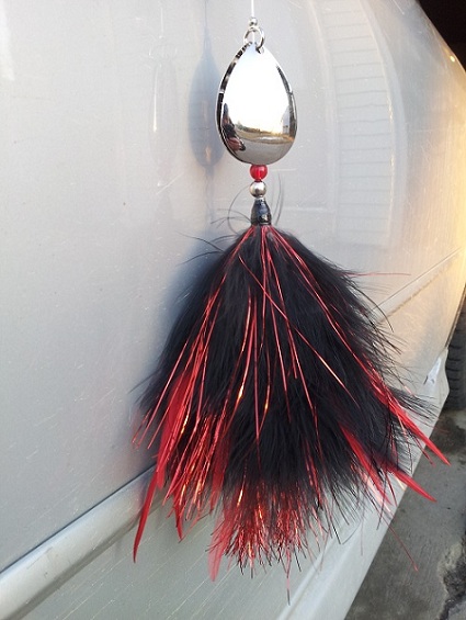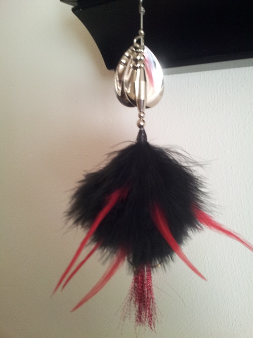 Posts: 345 Location: Poynette WI. | Brown/white marabou, black hackle, copper/silver flashabou w/ black nickel blades. Attachments ---------------- 2014-03-07 16.44.42.jpg (98KB - 381 downloads) 2014-03-07 14.04.10.jpg (79KB - 372 downloads) 2014-03-07 14.16.15.jpg (85KB - 335 downloads) | ||