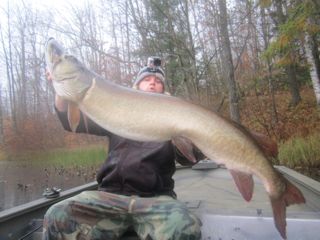 Posts: 77 | Plenty of big fish to be had in Hayward. You just have to know how/where/when to fish them. Kieper and I discussed at the Milwaukee show this year how he's had over 100 fish over 50 in the boat from our area in the last decade. A couple over 45 lbs. Last year was a tough year in Wisconsin due to late ice out and the yo-yo weather patterns but we still managed to put some really nice fish in the boat. Hayward's definitely tougher to get the big fish than Green Bay or St. Clair but look at where you're fishing. Who wants to be surrounded by buildings/traffic and piles of people when you're fishing muskies? Yeah you've got a better shot at stickin a hawg on those bodies of water but is that really all musky fishing is about? Here's a nice Hayward fish we got last October: Attachments ---------------- Pig.jpg (21KB - 170 downloads) | ||