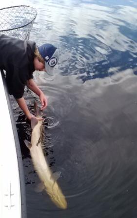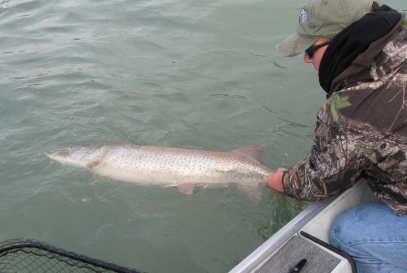 Location: Contrarian Island | DanO hanging w a 54.5"... ; ) too wavy in main lake to get a good release...brought her in shallow and Dan swam around w her for an hour to make sure she was good to go! very next cast out on the lake I bagged a 50"... BIG fish were goin that day! wonder what we woulda caught in that 1 + hour we chilled w her Edited by BNelson 3/25/2014 9:06 AM Attachments ---------------- dan54.5.jpg (76KB - 114 downloads) | ||