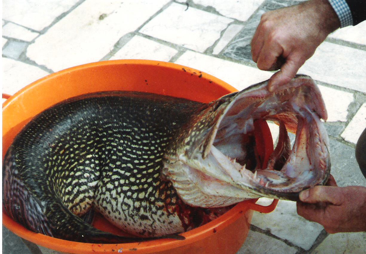 Posts: 1301 Location: Hayward, Wisconsin | Slightly bigger was this 1988 German Pike that weighed 57.4-pounds, caught by a Mr. Dietz. Attachments ---------------- 57.4 Germany 001.jpg (23KB - 447 downloads) | ||