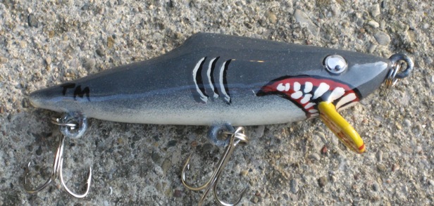 Posts: 137 | Here are some lures for the guys that said the board was slowing down lately. First off are a couple of lures by some friends that are really good lure makers. The first is a lure by Don of Hoosier Handmade baits that he custom made for me. It is 10 inches long and suspends between rips and has his famous hoosier handmade rattles. Nice lure, and he named it the hang toad after yours truly. That's an honor from a guy who makes lures that are nice looking, but also are really good at catching fish. The other lure is by a friend who makes a few here and there like myself. This is one nicely balanced and shaped lure, and it is big. Had awesome action during the trial run, and the foil paintjob was super nice. The other lures are some by myself, including a sucker lure that I made and am posting at someones request. Works as a dive and rise bait fairly well, but not as good as a suick. Then comes the mouse, which runs surprisingly well with a nice wobble back and forth, almost like a tippy darter on a straight retrieve. A guy named nathan bettencourt makes a much better version that I prefer to throw, though. And last is a bass bait I made just for fun. Shark eating surfboard crankbait. | ||