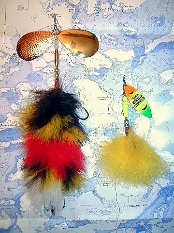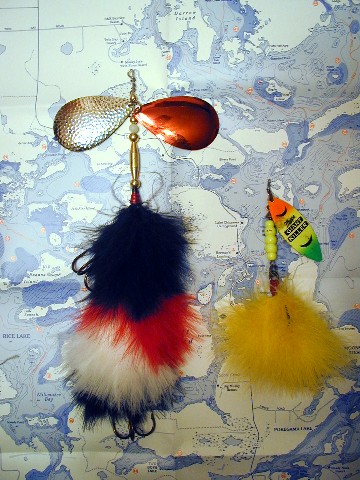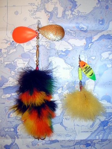 Posts: 156 Location: Northwest Chicago Burbs | First off thanks for responding. My favorites are fallout shad and bloody walleye too. Wanted something different than the rest. that is what makes basement baits cool. The wraps are done the old fashioned way pliers and braun. they are not loose but the map background throws it off. The blades are farther away because I wanted a chase affect, which you don't see on the market, and the hair will still dance! I can make the blades closer to the skirts, too. Going to make a cisco pattern similar to the fallout shad but with blue translucent blade/nickle blade and blue on white marabou. I may make a few with both flashabou and marabou, too. Edited by needa70lber 12/2/2007 1:01 AM | ||