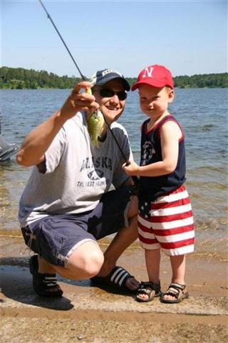 Posts: 335 Location: Minnesota | The first picture is of my son and I - I had to hold up the beasty 3 inch bluegill for him. The second picture is of about a 5 inch crappie. Attachments ---------------- fishin.jpg (39KB - 163 downloads) crappie.jpg (31KB - 147 downloads) | ||