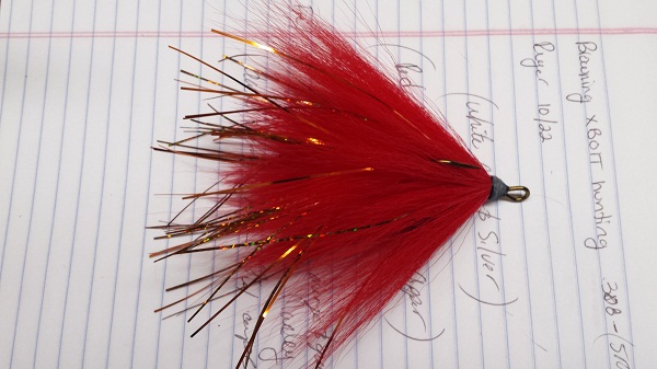 Posts: 345 Location: Poynette WI. | Making up some pre tied trebles and wanted to share for the guys who are just starting to tie their own. I start by putting a base layer of thread, then added the flash, then I like to add a few marabou feathers that do not have large quills, then layer of bucktail, then a little more flash, then another layer of bucktail. The marabou really gives it a full body but still light enough to allow for good hook set. the marabou also soaks up water allowing for longer casts if you need it. These are great to have for back ups when cutting hooks. Total length is a little over 5 inches on a 5/0 hook. Attachments ---------------- redcopper5pretiedtreble.jpg (81KB - 358 downloads) | ||