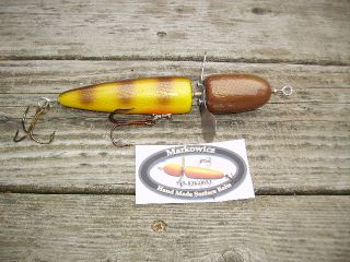 Posts: 79 Location: michigan | Fat fingers those foils are sweet. You inspired me and made me try some. As for the fakebaits, to those who asked is a picture glued on then airbrushed blended in. No different then commercial baits like gapens polish perch. I prefer wood baits more then pea foam or plastic. just got back from fishing anchor bay area and buddy and I went 8 pike and 6 follows from pike. The fakebait sucker pattern rocked, as well as the benny bait named from my son. I wish I new how to upload video because that's what the fakebait sucker is on. Edited by muskiehound 12/17/2006 7:52 PM Attachments ---------------- bennybait.jpg (64KB - 346 downloads) Picture 050.jpg (14KB - 325 downloads) | ||