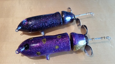 Nice lures. Purple is one of my favorite colors for topwaters. The addition of the glitter is a nice touch that will get them noticed.....and eaten!