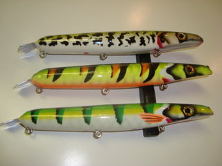 Posts: 46 Location: Addison,IL./ Hayward Wi. Chippewa Flowage | Thank you guys for the compliments, that means alot to me. Jeremy, I'm a die hard jerkbait man. I've been making these baits by hand for years with alot of success but lacking in consistancy. About a year ago I started shaping the lures in computer controlled machines and that's when I got the consistency I needed. So ,to answer your question ,if you like the action of dive/rise jerkbaits like suicks you're going to love the action ,versatility and consistancy of these. | ||