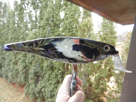 More Muskie Fishing -> Basement Baits and Custom Lure Painting -> Lodge lure