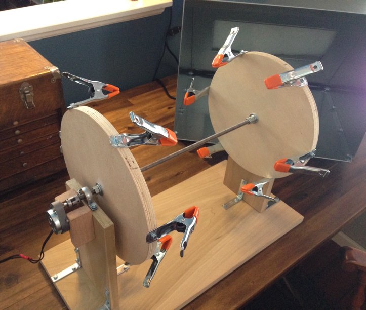 Posts: 102 | i just changed my spinner from a wheel to this cost is about $80 - $100 main cost is motor i spaced at 4" so i have 12 spots but you can move them in to 2" easily and would end up with 24 on a 3'-4' spinner mike Attachments ---------------- IMG_1058.JPG (112KB - 494 downloads) IMG_1057.JPG (102KB - 511 downloads) | ||