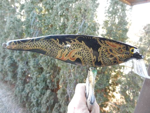 More Muskie Fishing -> Basement Baits and Custom Lure Painting -> Black Dragon shad
