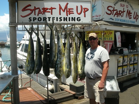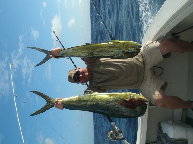 the next charters were "die hard charters" very intense people and "start me up". caught mahi mahi on both had to travel 3 to 4 hours out to fish both 10 to 12 hours long went with other people one was 4 people the other 5 people took turns reeling in fish. overall well worth the $. you will have to look them up on line to find out the island that are off of.