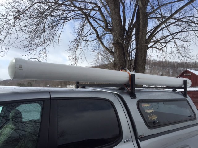 Posts: 910 Location: South-Central VA | Brian, Here are the pictures. The rack is made up of two 2" aluminum bars that run from side to side- one at the front of the cap and one at the back. The bars have two sides with a track cut into them that accepts carriage bolts in the center. You can then slide the carriage bolts left or right depending on what you're hauling. My buddy also welded up some brackets for me to aid in strapping things down. He powdercoated the rack and brackets as well. My rod tubes are the aforementioned 8" PVC tubes. I left them the full 10' length and then glued a cap on the front and an adapter with a screw in cap on the back (this added at least 6" to them). I spent about $200 on the tubes and the rack itself cost me a custom rod. Not a bad deal. I drilled the tubes to accept the carriage bolts and they have lock nuts on them so nothing can get away. I also ratchet strap them on- I'm not taking any chances!!! I like this setup because it is a very safe way to haul rods and it's also secure. You can also see the small handles I bolted on, they are a lifesaver when carrying the tubes! Let me know if you have any questions. jeremy Attachments ---------------- A.jpg (58KB - 284 downloads) B.jpg (64KB - 265 downloads) C.jpg (72KB - 249 downloads) D.jpg (78KB - 290 downloads) E.jpg (85KB - 267 downloads) | ||