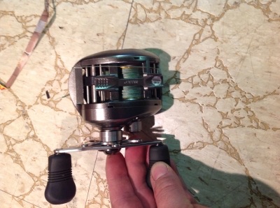 Has 2 weeks of use. Been sitting on my shelf for 2 yrs. spooled with 65lb power pro. Works flawlessly and has minor scratch, can't be seen in pics. 9 out of 10
