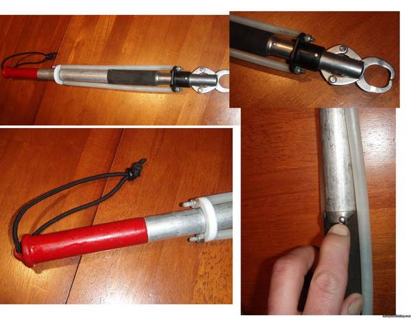 I also created an extension for mine which works awesome as well. You can work the mechanism up higher and away from the fishs' mouth and flailing lures. I'll try to find a picture And you CAN hold the fish up with one, as long as you support the fishes weight under the belly....
