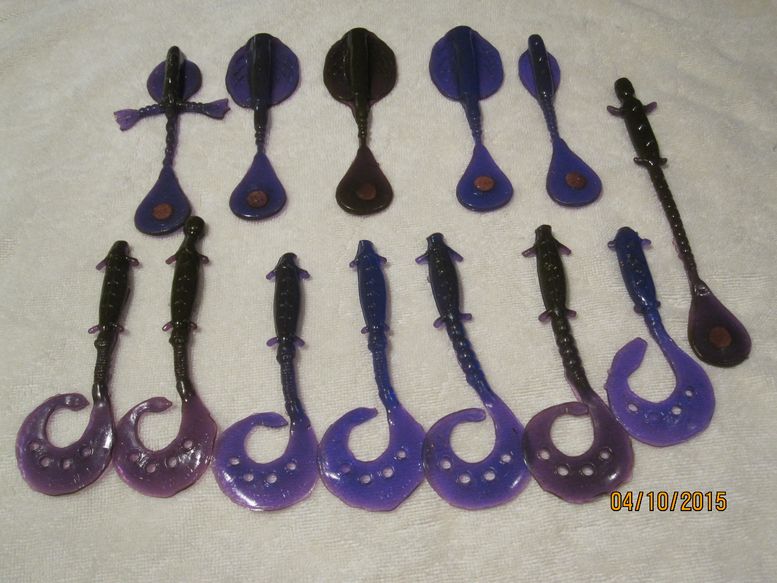 Tried pouring a new color creature for the opener. Its called Purple/brown. The baits look purple, but in water they appear Brown. Mark that pours the Hellkat had several big fish take this color last year. SO, wanted to try it in Jig/creature size.