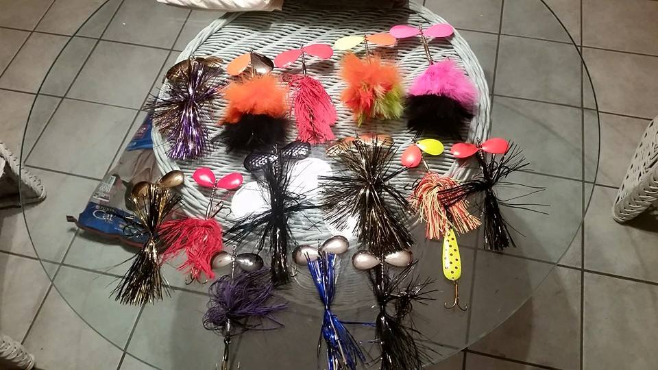 Hey guys! I look at all of your work and really admire it. So, I thought I'd share some of mine. For the past 3 years I have fished 2, maybe 3 weeks a year, with a guide trip or 2 thrown in as well. Since I am boatless and live in Arkansas, I started making bucktails to pass the time between trips, and now have way too many. Granted, they are bucktails, but they are all I can do. If I could justify it, I would definitely start making cranks and plastics just for fun. This year I asked a buddy I met at the Spring Bay outing if he wanted some for cost and he was all for it. So, here they are. I particularly like tying Marabou and they run really well, with lots of flare and pulsing.